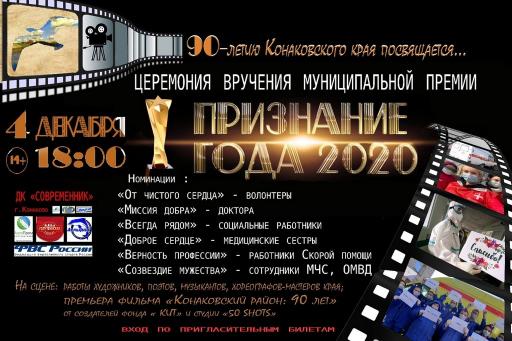 В год 90-летия Конаковского района, в год испытаний, в год борьбы с распространением COVID-19, героями церемонии вручения муниципальной премии «Признание года 2020» станут жители нашего города и района, принявшие на себя все трудности и риски периода пандемии коронавируса.