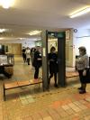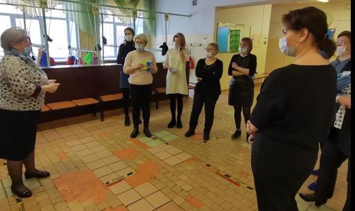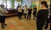 Прибытие родителей в ППЭ, конечно же, было, как на настоящем экзамене, с паспортами и гелевыми авторучками. В назначенное время в фойе школы на 1 этаже родителей встретили директор школы Н.П.Крапивина, организаторы вне аудиторий, ответственные за регистрацию прибывающих на экзамен родителей и гостей, член государственной экзаменационной комиссии, назначаемый Министерством образования Тверской области, Клюшанова С.В.