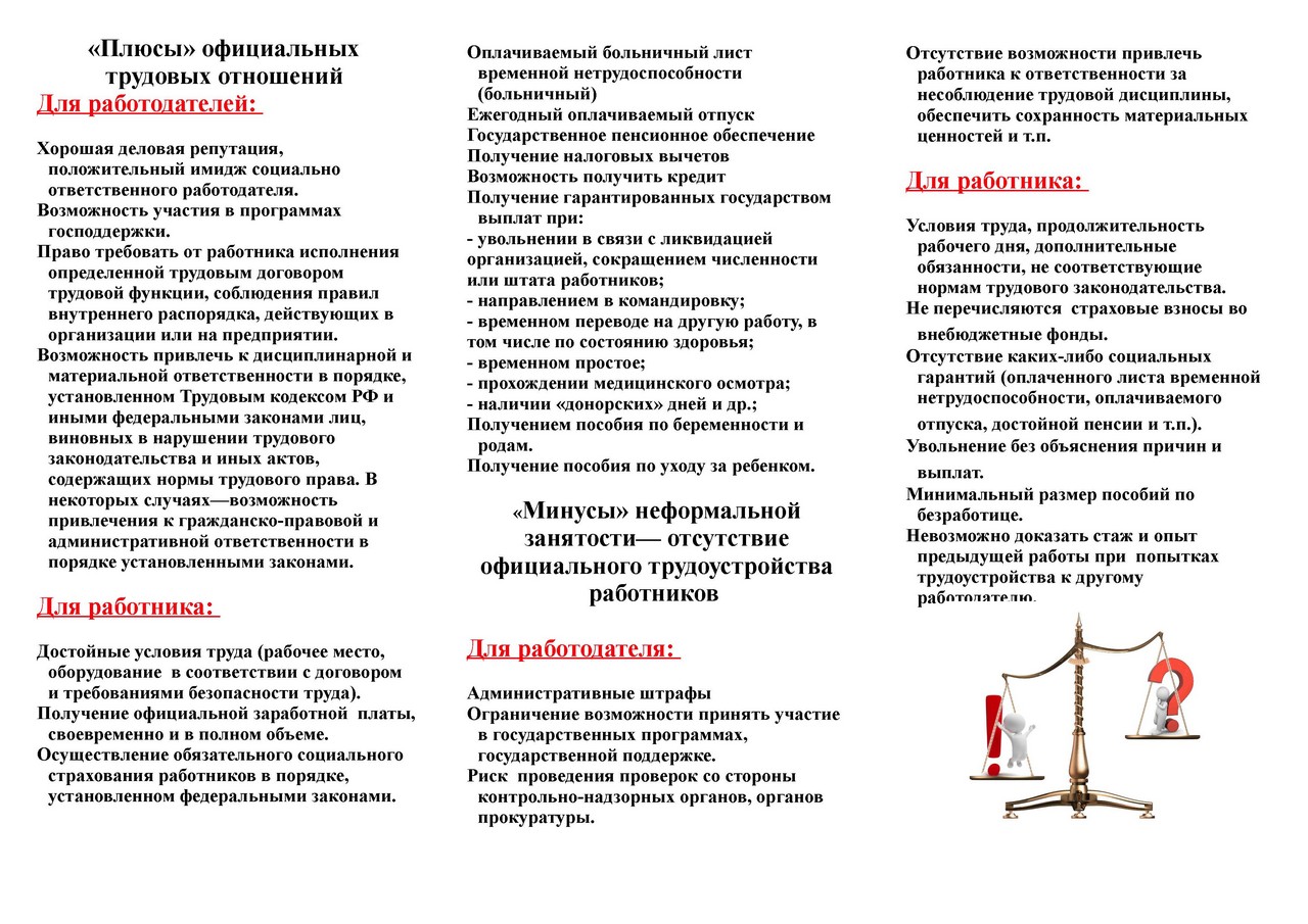 Сокращение неформальной занятости и легализация трудовых отношений