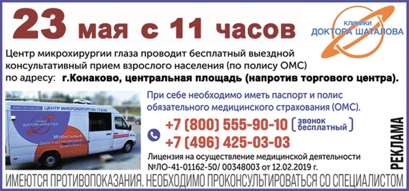 Прием состоится 23 мая с 11.00 в передвижном медицинском комплексе по адресу: