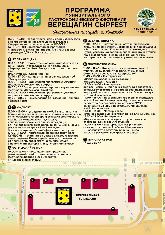 17 мая 2025 года на Центральной площади города Конаково пройдет VI ежегодный гастрономический Фестиваль «Верещагин СырFest-2025».