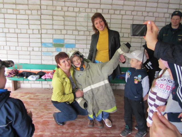 Но и это было не все: в честь предстоящего праздника руководство ПЧ-15 подготовило ребятам подарок. Несмотря на дождливую погоду, огнеборцы продемонстрировали малышам пожарную машину, и каждый ребенок смог примерить на себя пожарное обмундирование.