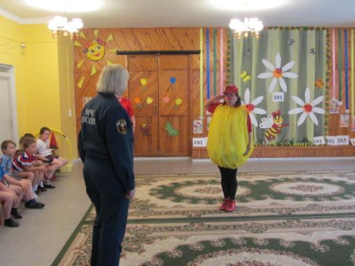 События переплетались с веселыми соревнованиями команд малышей «Капельки» и «Спасатели» подготовительных и старших групп сада. Ведь именно они были надежными помощниками Колобка на протяжении всей сказки. За их мужество, смелость и ловкость обеим командам инспектором ГПП ПЧ-15 Тарасенко О.П. и инструктором ППП ПЧ-15 Бориной С.В. были вручены Дипломы.
