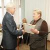 Благодарственные письма от Собрания депутатов и администрации Конаковского района были торжественно вручены тем ветеранам, кто в нынешнем году отметил юбилей. В этом году юбилярами — и обладателями благодарственных писем — стали Зигфрид Таубес, Иван Сычев, Надежда Внукова, Энгель Лойцкер и Иван Рулев. Сам Иван Андреевич Рулев, попросив дать ему слово, поблагодарил власти района за внимание к проблемам и предложениями ветеранов. Подарок для заслуженных земляков подготовил и холдинг «Эко-Тепло». Хотя сам генеральный директор компании Юрий Шеляпин не смог лично поздравить наших ветеранов, это сделала представитель «Эко-Тепло», которая вручила каждому приглашенному на прием памятный подарок.