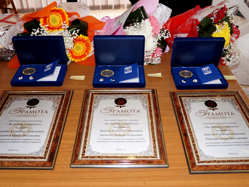 Поздравить семью Павловых в ДК «Современник» пришли руководители района – Глава Конаковского района Людмила Козлова, депутат Законодательного Собрания Тверской области Надежда Егорова, заместитель главы администрации района по социальной политике Аггюль Бородина. Людмила Козлова напомнила собравшимся, что Леонид Павлов не только уважаемый врач, но и депутат районного Собрания депутатов, руководитель местной ячейки партии «Единая Россия», член политсовета районного отделения партии. Добавим, что Леонид Геннадьевич еще и один из победителей внутрипартийного предварительного голосования, которое проводилось 22 мая. Геннадию Ивановичу, как главе семьи, вручили медаль «За любовь и верность», а также ценные подарки. Такие же подарки и медали получили и главы остальных трех семей, приглашенных на торжественную церемонию.