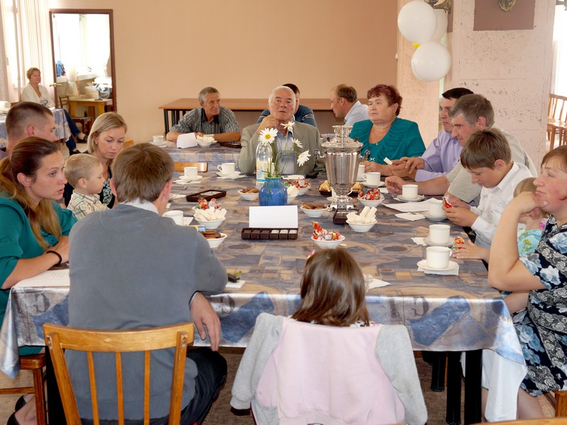 На церемонию Павловы приехали,к сожалению, не все: Лаура Викторовна по состоянию здоровья осталась дома. Зато за столом собрались все остальные члены семьи: глава семьи Геннадий Иванович, его сыновья Леонид Геннадьевич и Сергей Геннадьевич, жена Леонида Елена Владимировна, их дети Андрей и Олег, и сын Сергея Геннадьевича Артём. Павловы – уникальное явление для Новозавидовского, семья потомственных врачей. Геннадий Иванович приехал из Осташково в Новозавидовский работать врачом-рентгенологом. Здесь же родились и выросли его сыновья, Леонид и Сергей, которые пошли по стопам отца, стали врачами. Леонид – главный врач больничного комплекса в Новозавидовском, Сергей там же работает врачом-неврологом. Примечательно, что все Павловы-врачи заканчивали один и тот же Калининский медицинский институт, и профессора, которые читали лекции Павлову-старшему, учили и Павловых-младших.