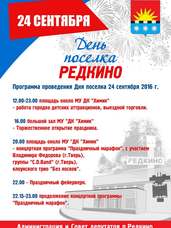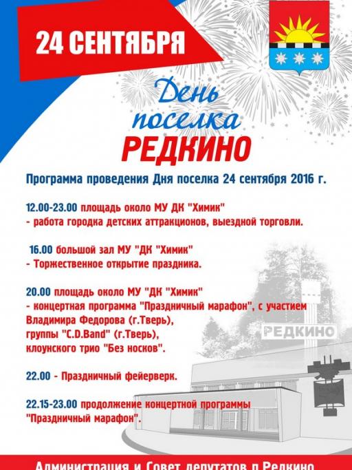 Программа проведения Дня поселка Редкино 24 сентября 2016 г.