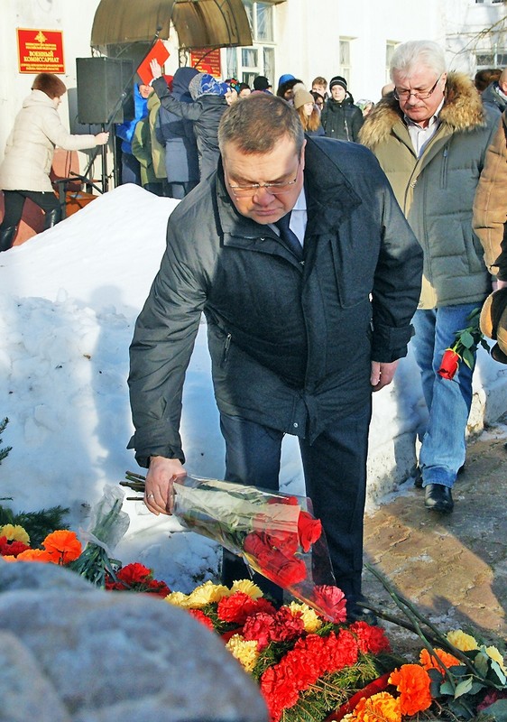 15 февраля глава Конаковского района Людмила Алексеевна Козлова, глава администрации Конаковского района Олег Владимирович Лобановский, его заместитель по социальным вопросам Аггюль Арифовна Бородина приняли участие в митинге, посвященном 28-ой годовщине вывода советских войск из Афганистана, который состоялся у здания военкомата в г.Конаково.