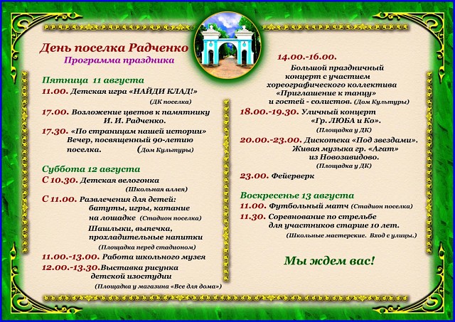 День поселка Радченко! Праздничные мероприятия будут продолжатся три дня.