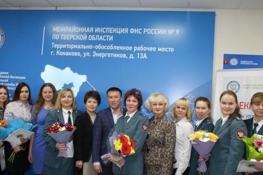 Исполняющий обязанности Главы Конаковского района Наталья Владимировна Василенко и временно исполняющий обязанности Главы г. Конаково Максим Ефимович Ли поздравили сотрудников ТОРМ Конаково Межрайонной ИФНС России №9 по Тверской области с профессиональным праздником!